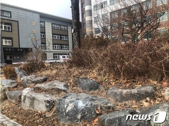 | 인천 지역 한 학교 내에서 확인된 석면 조경석(인천환경운동연합 제공)2023.2.13/뉴스1 |