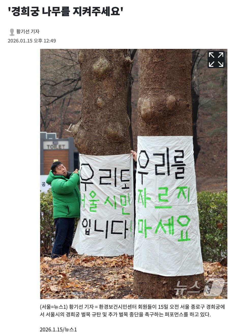 [연합,뉴스1] 경의궁 나무를 지켜주세요