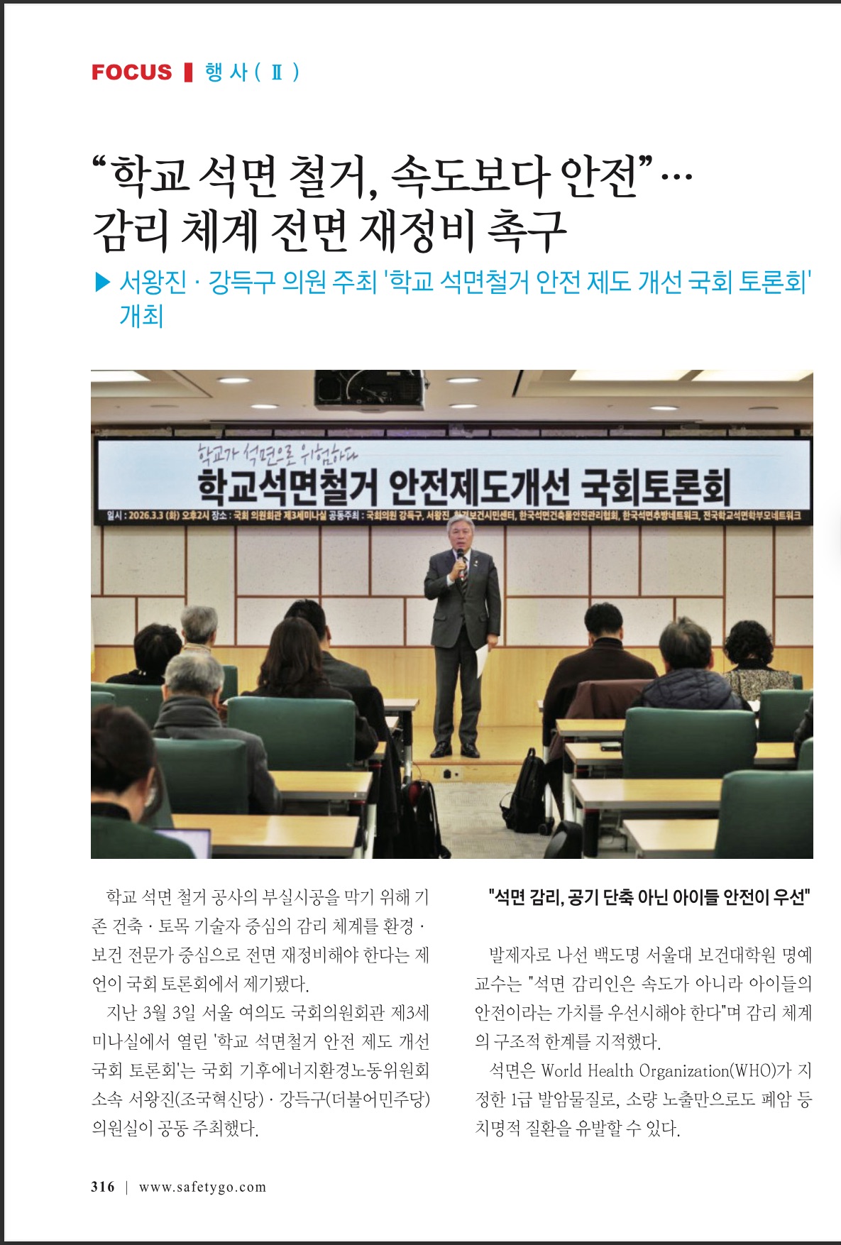 [안전세계] 학교석면철거 안전제도개선 국회토론회