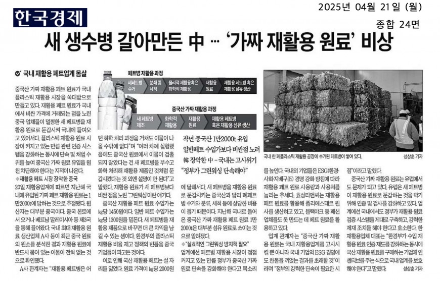 한국경제, 새 생수병 갈아서 가짜 재활용, 중국