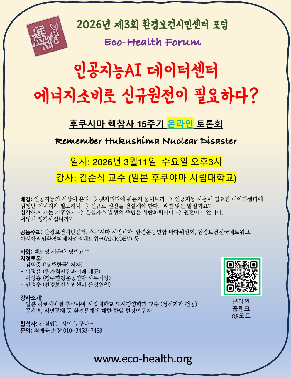 [2026년3월11일] 후쿠시마 핵참사 15주기, 온라인 세미나