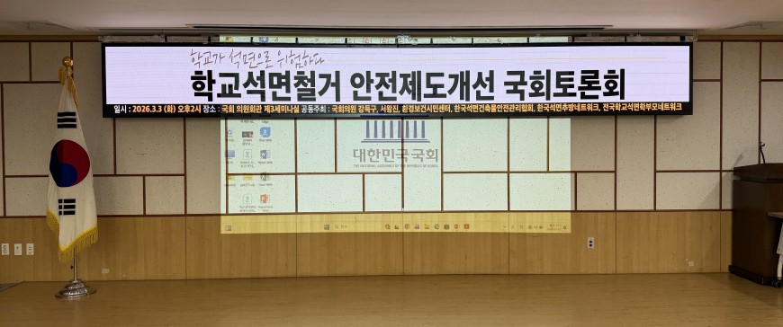 2026년 3월3일 화요일 오후2시 국회 의원회관 제3세미나실에서 열린 <학교가 석면으로 위험하다 - 학교석면철거 제도개선위한 국회토론회>가 열렸습니다.