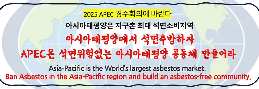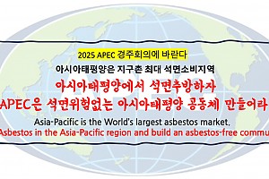 <아시아태평양은 지구촌 최대의 석면소비지역. 아시아태평양에서 석면추방하자, 석면위험없는 아시아태평양공동체 만들자>