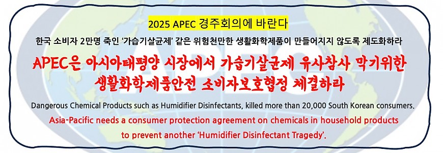 <아시아태평양 시장에서 가습기살균제 유사참사재발 막기위한 생활화학제품안전 소비자보호협정 체결하자>