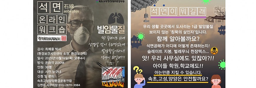 29수 오후4시, <환경이아프면 몸도아프다> 온라인워크숍(석면)