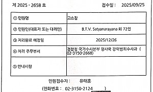 환경보건시민센터 보도자료 2025년 9월25일자엘지화학 인도참사 피해주민 73명신학철 부회장 등 엘지화학 본사상대 한국 경찰청에 형사고소민변 남성욱 환경보건위원장 등 5명의 한국 변호사 대리인단 꾸려 법률지원25일 오후 경찰청 국가수사본부에 접수할 고소장에신학철 부회장, 환경담당이사, 엘지화학 등을 피고소인으로업무상과실치사상죄 위반으로 엄히 처벌해달라고 적…