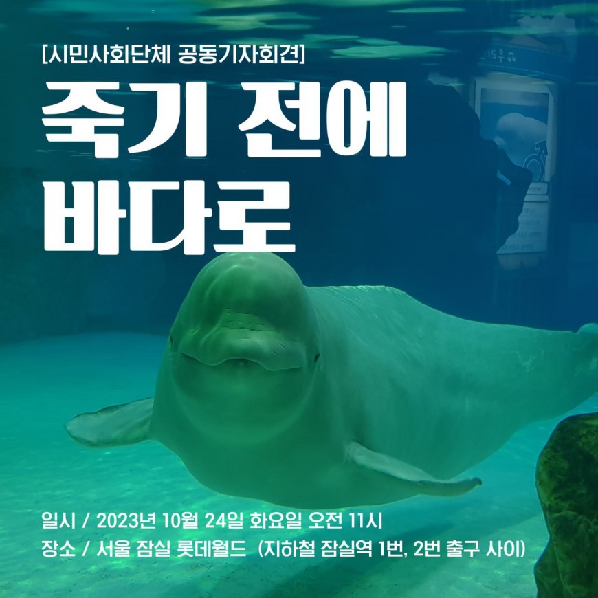 [고래보호캠페인] '죽기전에 바다로' 롯데월드 흰고래 벨라 바다방류 촉구 기자회견 안내