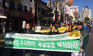 <사진, 2017년 11월18일 오후 서울 광화문에서 국회까지 가습기살균제 피해자, 세월호 유족, 시민들이 [사회적참사 진상규명 특별법] 제정을 촉구하며 거리 행진을 하고 있다>환경보건시민센터 보도자료 2017년 11월20일자 가습기살균제참사전국네트워크 월요 캠페인 20회차 가습기살균제 참사 진상규명 및 피해대책 촉구 기자회견 가습기살균제 참사 …