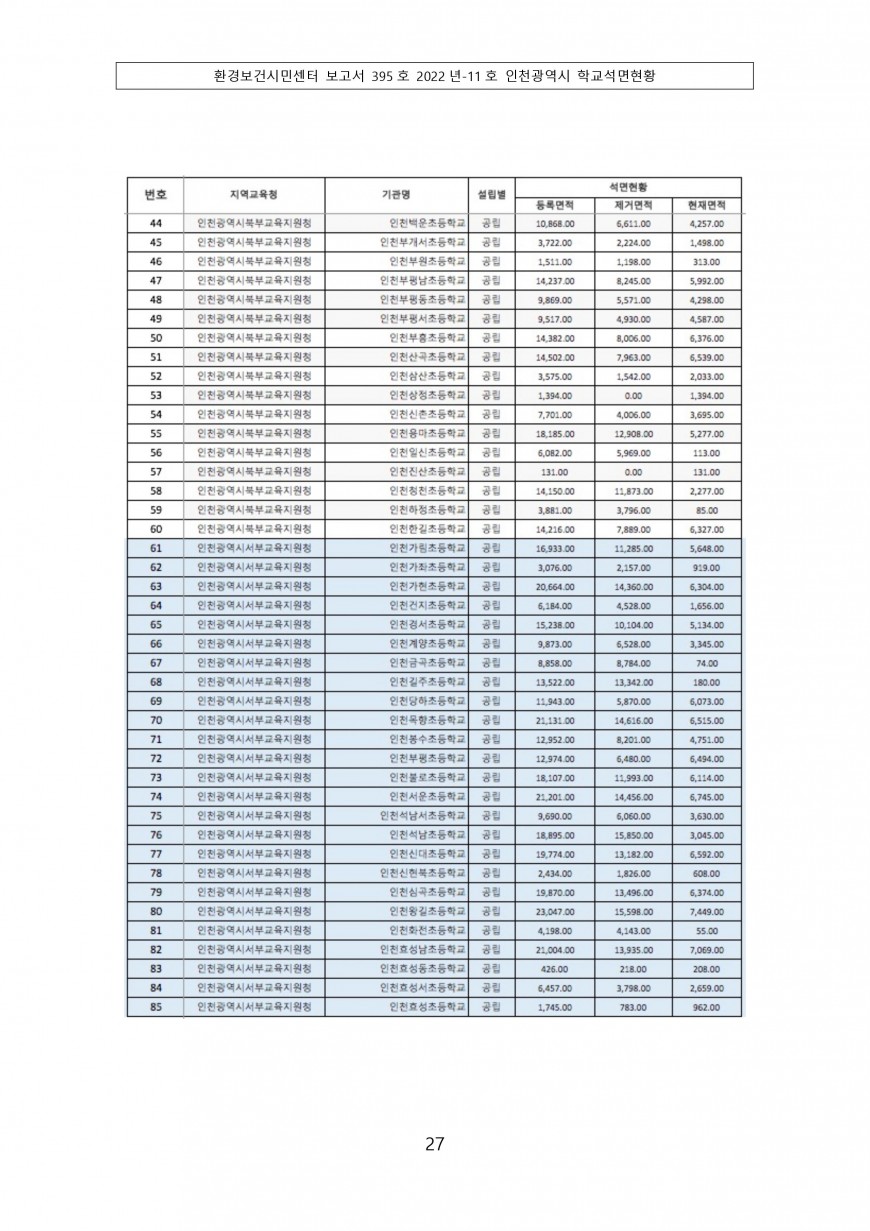 보고서 395호 [인천광역시] 학교석면 실태조사 보고서, 2022년 7월 14일 목요일 기자회견