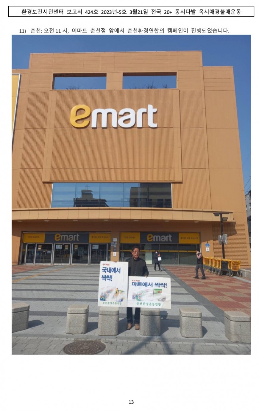 [보고서 424호] 2023년-5호 3월20일 전국 동시다발 옥시애경불매운동 현장사진 관리자 0 5981 2023.03.22 08:49 보고서 파일은 아래 클릭해서 다운로드 받으세요 http://www.eco-health.org/bbs/board.php?bo_table=sub02_04&wr_id=432