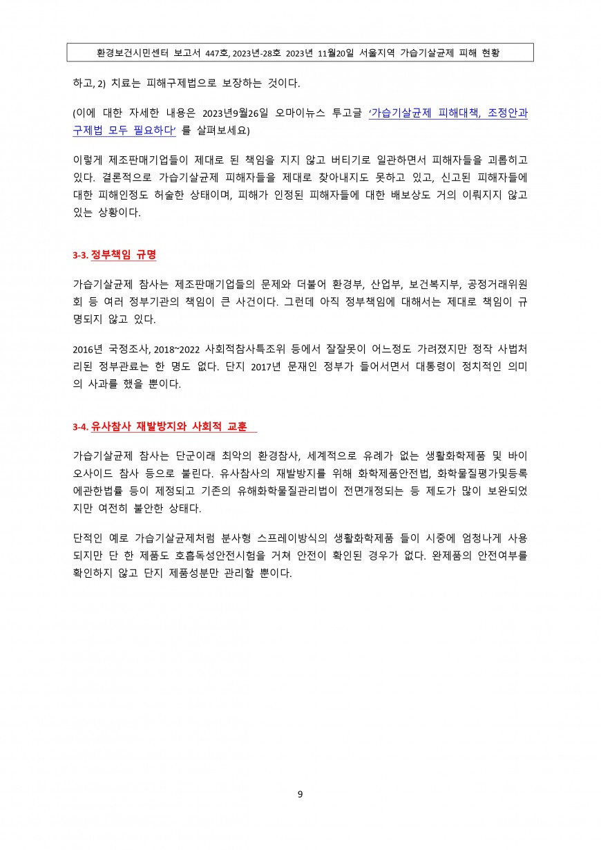 [보고서 447호] 서울지역 가습기살균제 피해 현황