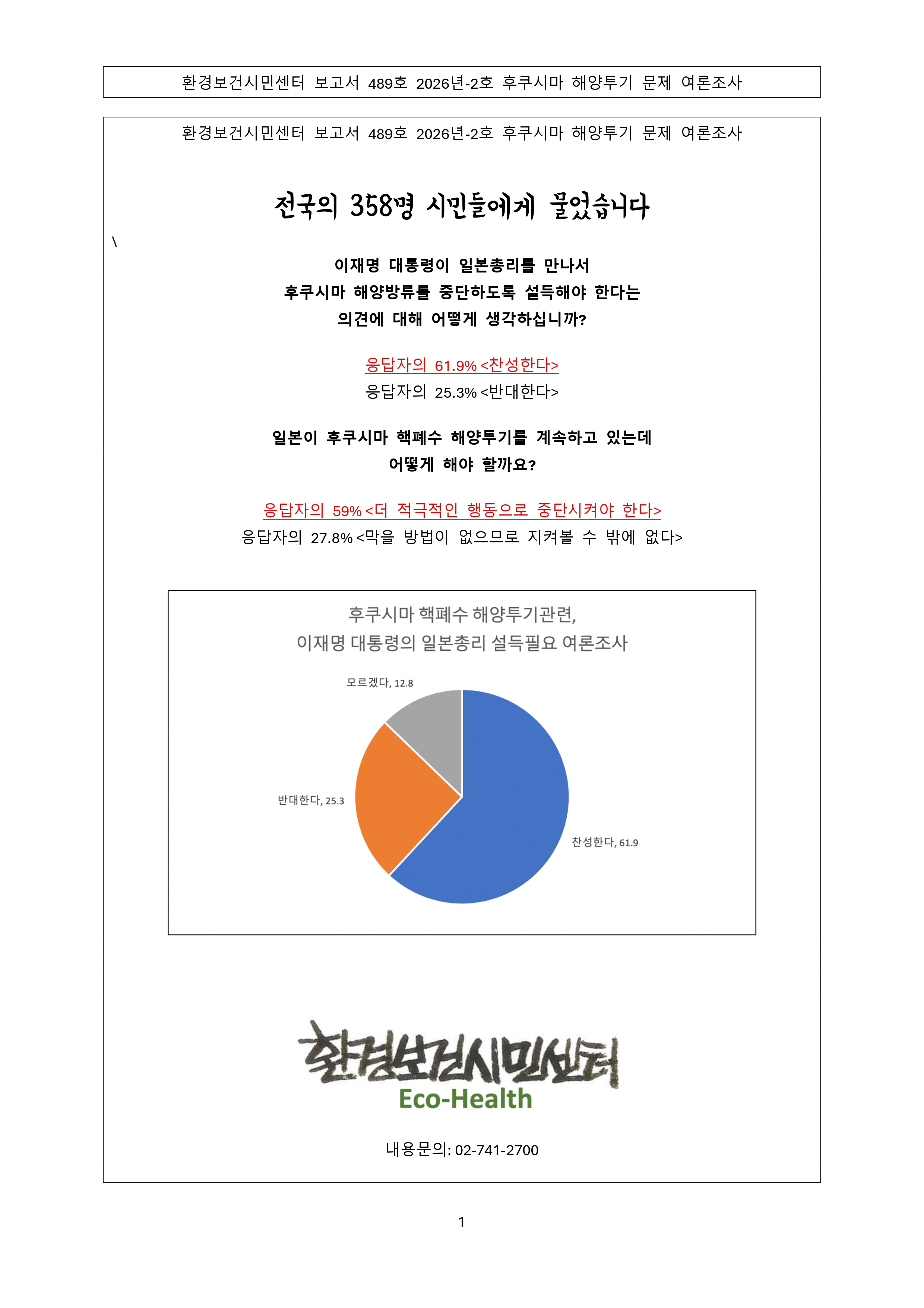 [보고서 489호] 국민다수, 이재명 대통령은 일본총리 설득해 후쿠시마 해양투기 중단시켜야 관리자 0 58 2시간전 보고서 파일은 아래 클릭하세요 http://www.eco-health.org/bbs/board.php?bo_table=sub02_04&wr_id=528