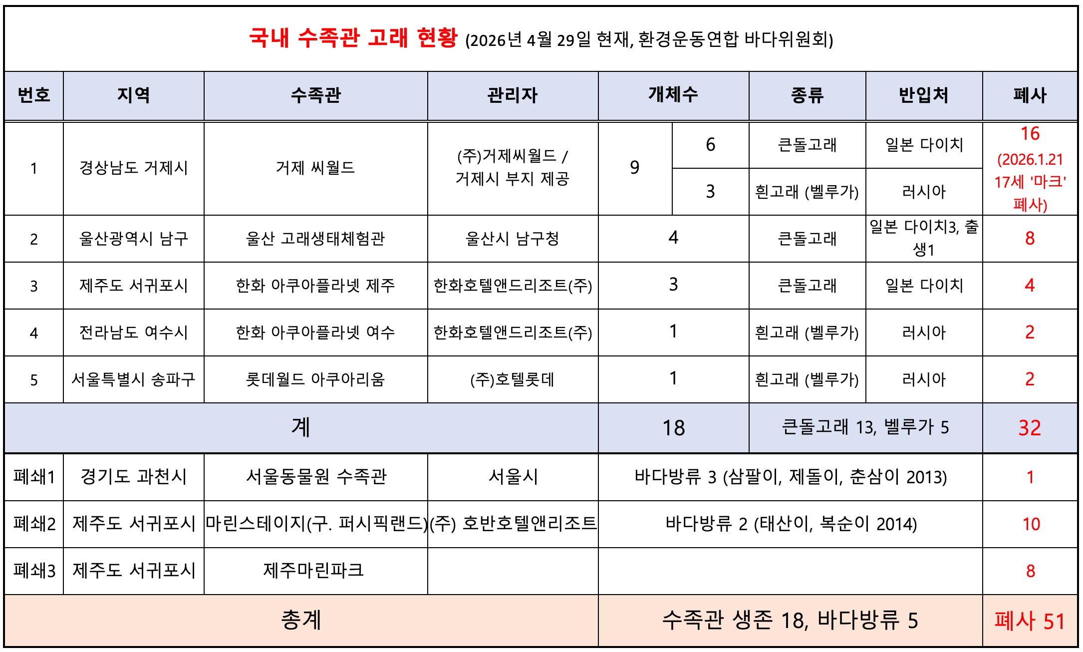 2026년에 모든 수족관의 고래들을 바다로 돌려보냅시다.