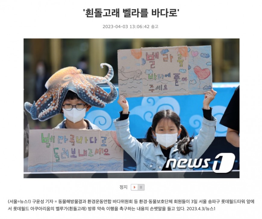 [뉴스1] 벨루가 방류촉구 상여행진