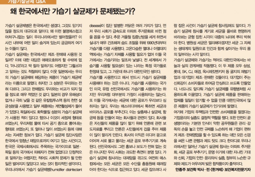 [가습기살균제 Q&A 16] 왜 한국에서만 가습기살균제가 문제됐는가?