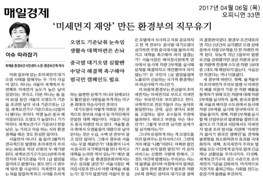 [이슈 따라잡기] `미세먼지 재앙` 만든 환경부의 직무유기