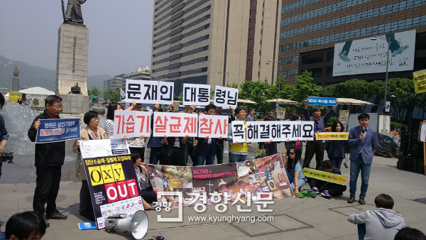 "옥시 쓰고 사망한 남편...정부는 '피해자'가 아니라고 합니다" 다시 거리 나선 가습기살균제 피해자들