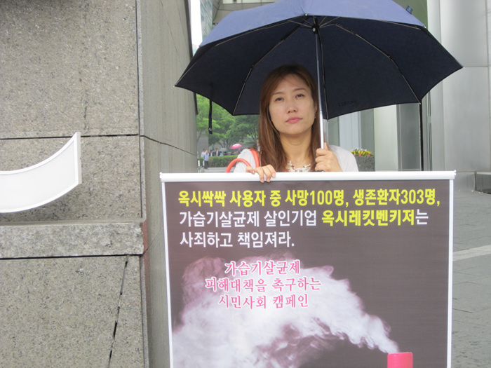 150519 광화문과 옥시본사(여의도) 일인시위 임흥규 0 11527 2015.05.19 15:07 빗방울이 떨어지는 광화문과 여의도에서 가습기살균제 피해자 일인시위가 진행됐습니다. 광화문에서는 가습기살균제피해자와가족모임 백승목 대변인이 참여하였습니다. 옥시 본사(여의도)에서는 딸을 잃은 엄마 최지연씨가 일인시위를 하였습니다.
