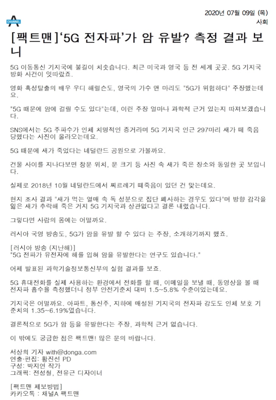웃기는게 실측했다고 하면서 실측치를 제시하지 않습니다. 5G 휴대전화의 경우 기준치의 1.5~5.8%, 5G 기지국의 경우 1.35~6.19% 수준이라며 "결론적으로 5G가 암 등을 유발한다는 주장, 과학적 근거가 없습니다"라고 주장합니다.