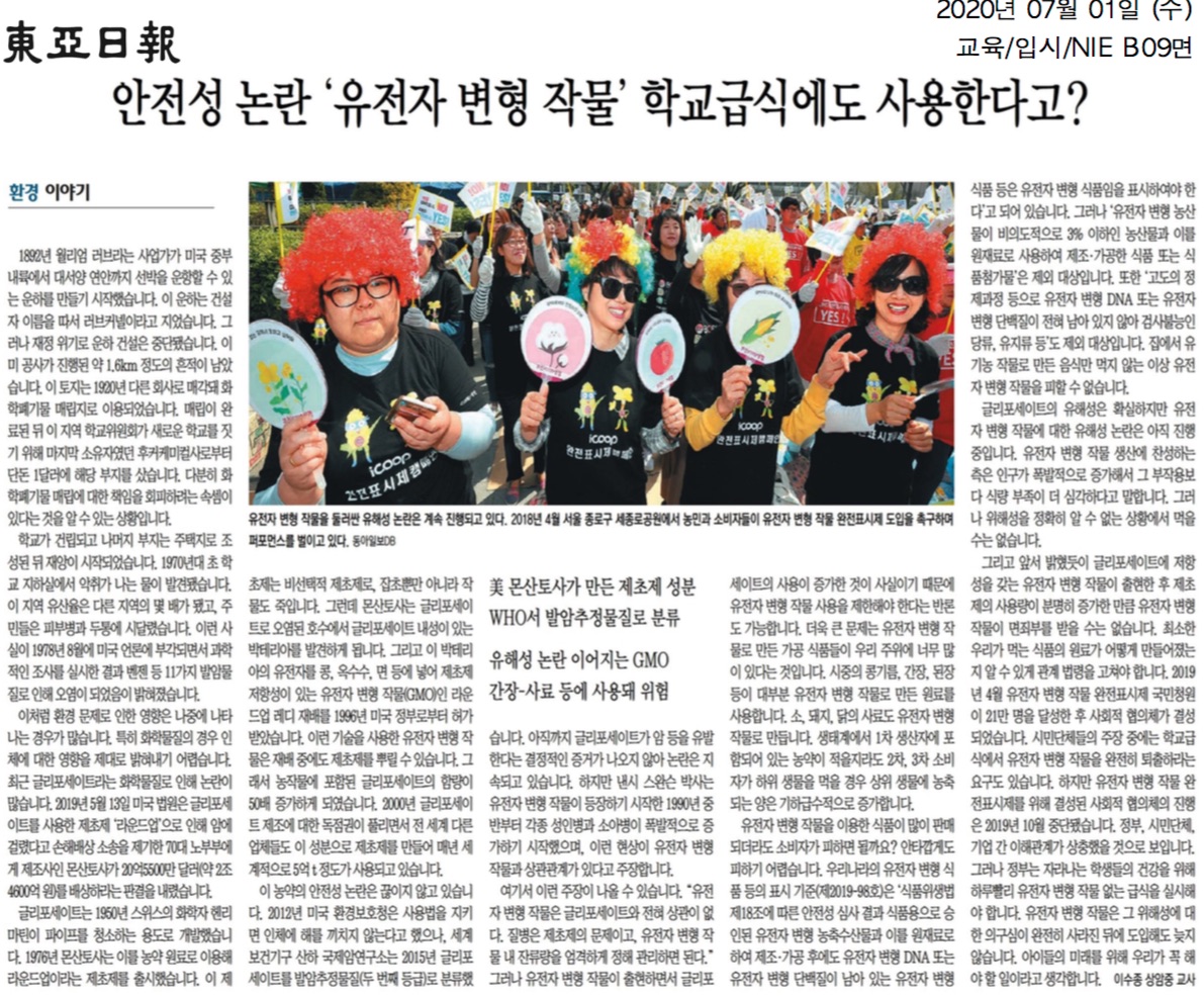 안전성 논란 '유전자 변형 작물' 학교급식에도 사용?