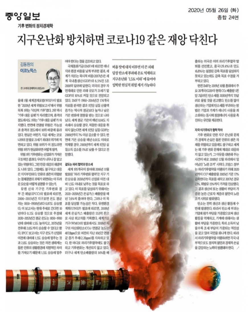 지구온난화 방치하면 코로나19같은 재앙닥친다