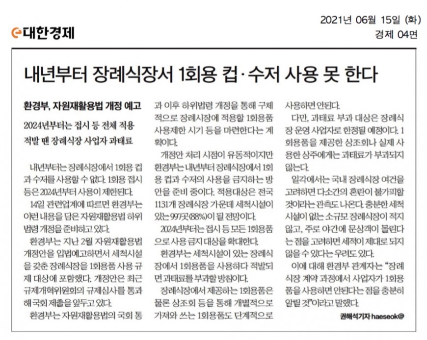 내년부터 장례식장 일회용 사용금지