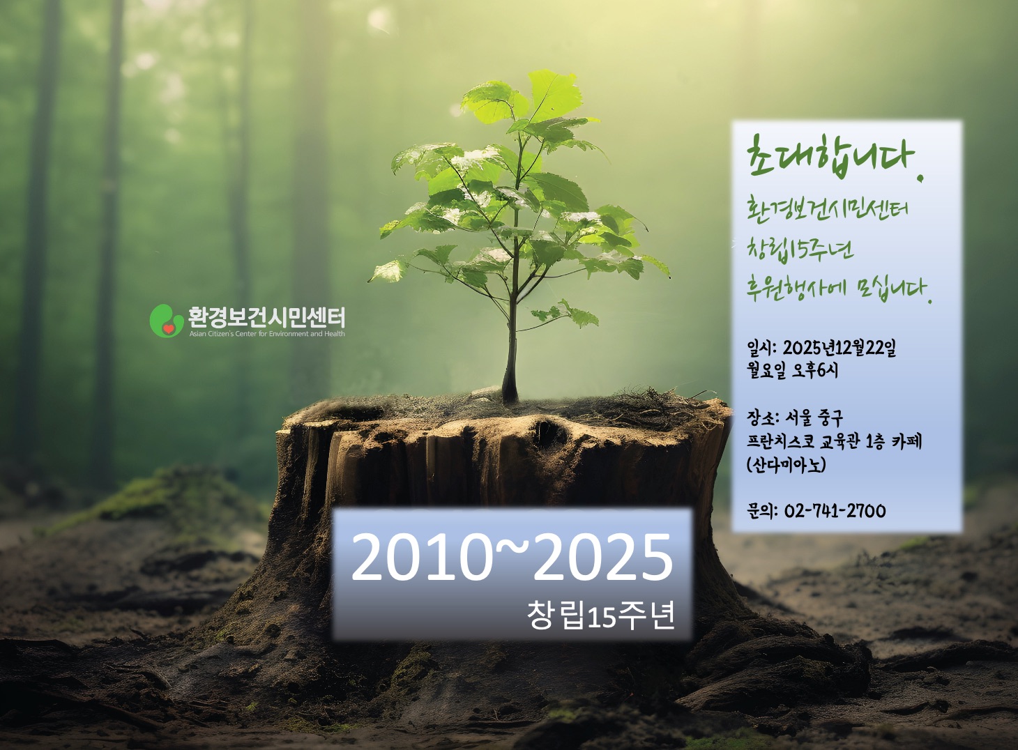 2025년 12월22일 월요일 오후6시, 환경보건시민센터 창립 15주년 기념행사 자리에 모십니다.