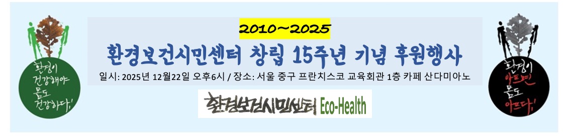 2025년 12월22일 월요일 오후6시, 환경보건시민센터 창립 15주년 기념행사 자리에 모십니다.