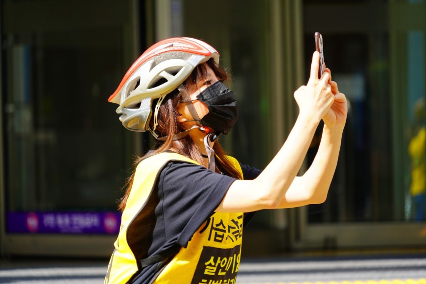 <가습기살균제 피해자들의 일거수 일투족을 영상에 담는 류이 감독>