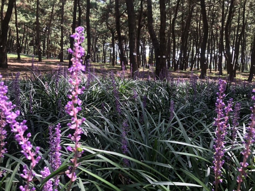 장항제련소가 보이는 곳에 위치한 '장항송림산림욕장' 곳곳에 맥문동 군락이 조성되었는데 오랜기간 장항제련소에서 날아온 중금속 오염물질로 인한 토양오염 문제해결에 맥문동이 도움이 된단다. 그래서인지 산림욕장 입구의 작은 현판에 "본 산림욕장은 구)장항제련소 주변 송림숲 등 식생지역 위해성 평가에 기반한 위해도 저감조치 사업이 진행중에 있습니다"라는 내용이 적혀있었다. 답사참가자들은 '모래바람속에도 중금속이 들었을까?', '맥문동 꽃과 이파리에 중금속 농도가 얼마나 될까?' 궁금해 했다.