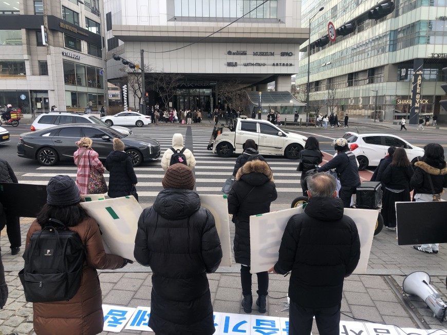 2025년 2월25일 화요일 제7차 애경 규탄대회, 오늘은 6개월된 딸 지현이를 잃은 아빠 김홍석 님이 인천에서 참석했습니다. 가습기살균제 사건초기 열심히 피해자운동에 참여했던 아빠입니다. 이후 생업때문에 못 나오다가 오랜만에 시간을 냈습니다.