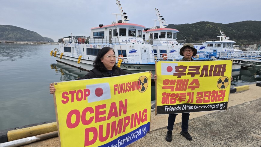 [4월12일 거제 지세포항] 일본은 후쿠시마 핵폐수 해양투기 중단하라 관리자 2026년 0 7 1시간전 2026년 4월12일 거제 지세포항구의 고기잡이 배 위에서 일본의 후쿠시마 핵폐수 해양투기 중단을 촉구하는 피켓팅을 했습니다. 환경운동연합 바다위원회, 통영거제환경운동연합, 환경보건시민센터, 한국석면추방네트워크, 마녀빗자루 등이 같이 했습니다~